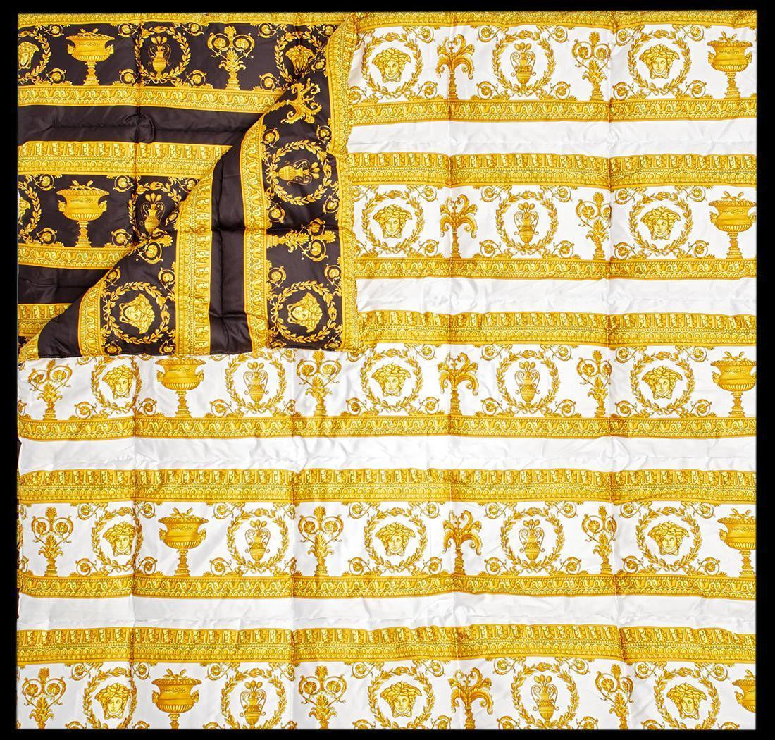 This Versace Comforter is reversible with a black/gold side and white/gold side. Both sides of this Versace Comforter are in same design.